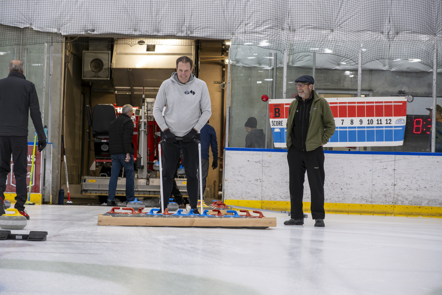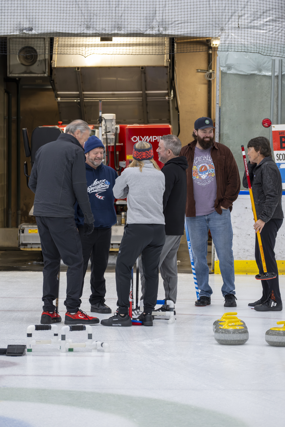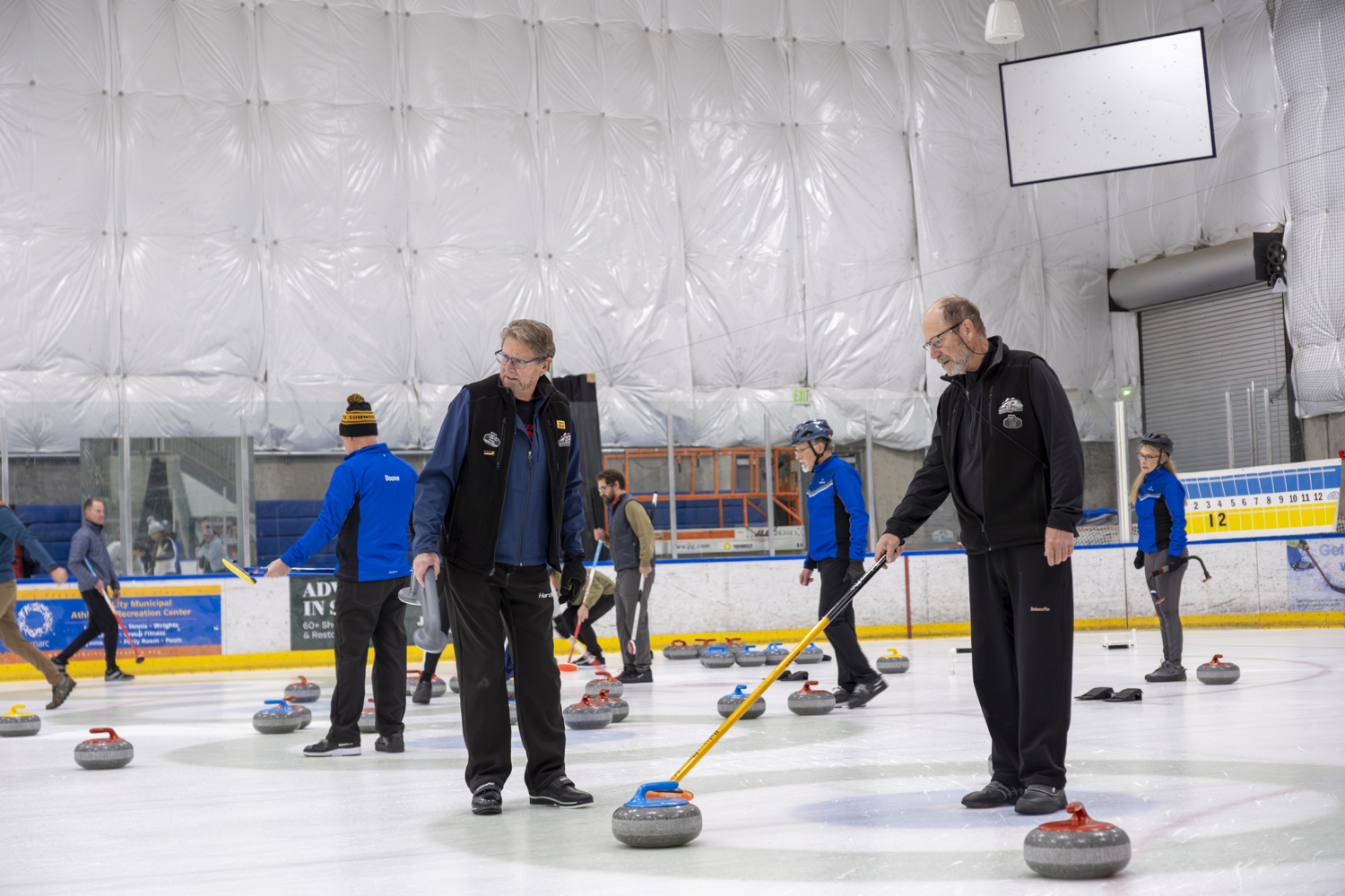 In the early days, the club ran on pure dedication. We didn’t own any stones, so members borrowed them from the Ogden Curling Club—an hour away—and hauled them back and forth every week just to play. There weren’t even curling rings painted on the ice yet, so before each game the houses were drawn by hand with markers. It wasn’t fancy, but it worked, and it brought people together.